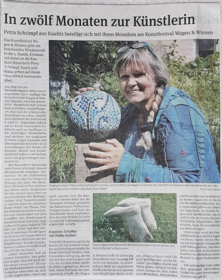 Schon seit ihrer Jugend ist Petra auf vielen Gebieten kreativ tätig. So spezialisierte sich das Multitalent auf Mosaikkunst und ist seit 2015 als freischaffende Künstlerin tätig. In und am Haus, aber auch verschiedenste Skulpturen bekommen unter ihren Händen, die schönsten Farben und Muster. Um Ihre Kunst der Welt zu präsentieren, ging die heute 59 Jährige mit der Marke „Petramint“ an den Markt.